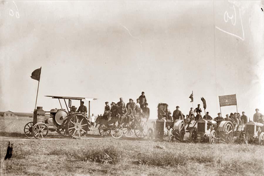 Jiddisch van een steuncampagne voor de joodse landbouwcommunes uit 1929: ‘Met elke draai van de wielen van zijn tractor bouwt de joodse landwerker mee aan het socialisme. Help hem!’De joodse aanwezigheid op de Krim gaat nochtans een eind verder terug. De Krimçak en Keraïten, beide oriëntaals-joodse bevolkingsgroepen van Turks-Tataarse origine, bewoonden het schiereiland als sinds de dertiende eeuw. In 1783, toen de Krim bij het tsarenrijk werd gevoegd, waren ze met zo’n 2.500. Oost-Europese asjkenazische joden begonnen zich op het schiereiland te vestigen rond 1820. In 1897 bedroeg hun aantal zo’n 24.000. De latere joodse immigratie en vestiging onder de vlag van ‘rood zionisme situeert zich op de achtergrond van de burgeroorlog die uitbrak na de bolsjewistische staatsgreep van 1917, de sovjet- machtsovername op de Krim in november 1920, en de oprichting van de autonome socialistische sovjet-republiek van de Krim in oktober 1921.