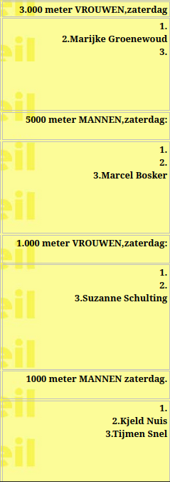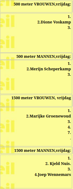 Afgezegd hebben bij de vrouwen: Femke Kok, Jutta Leerdam, Angel Daleman, Antoinette Rijpma-de Jong én Joy Beune.Bij de mannen zijn deze:Jenning de Boo, Tim Prins, Beau Snellink en Chris Huizinga.
