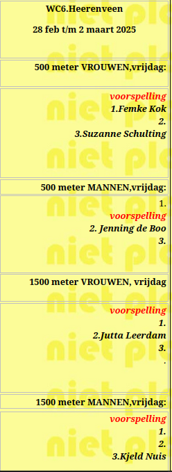 Dit is mijn voorspelling voor de wedstrijden van de WC6 in Heerenveen.