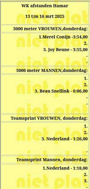 Mijn voorspellingen vwb de Nederlandse deelname aan de wedstrijden WK afstanden op 13, 14,15 en 16 maart 2025 .