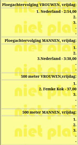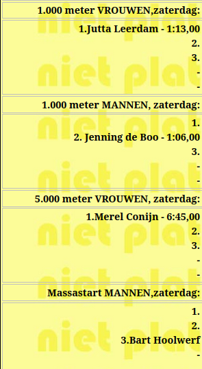 Mijn verwachting dat Kjeld Nuis op de 1500 meter een podium zal bereiken is eigenlijk op niets gebaseerd(!)Qua techniek zal hij het wel kunnen maar of zijn voet meewerkt?