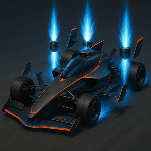 Verticale Stuwraketten (Thrust Vectors): De belangrijkste innovatie zit in de vier verticale stuwraketten, twee aan de voorkant en twee aan de achterkant, dicht bij de wielen. Deze motoren leveren de onmiddellijke stuwkracht voor de verticale lift en de precieze controle tijdens het vliegen en landen.